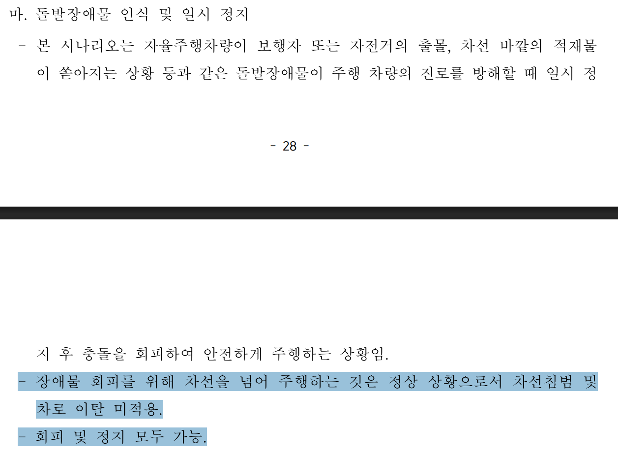 규정집 29페이지에 "장애물 회피를 위해 차선을 넘어 주행하는 것은 정상 상황으로서 차선침범및차로 이탈 미적용."라고 적혀있는데 제대로 적용되는 규정인지 재확인을 부탁드리고 싶습니다.